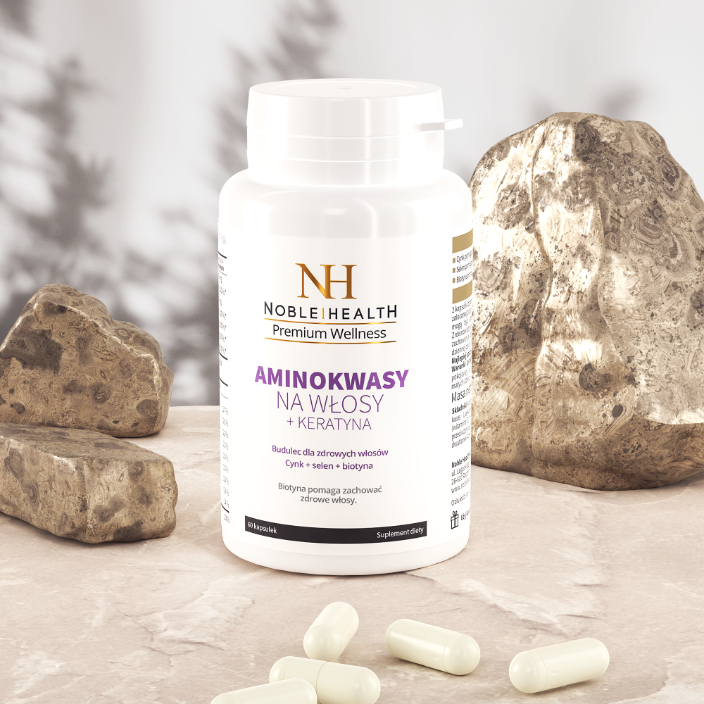 L'ingrediente principale di Noble Health Amino Acids for Hair è il collagene di pesce marino NatiCol®. Contiene aminoacidi, il cui elenco dettagliato è disponibile nella scheda Ingredienti. NatiCol® proviene dalla Francia, ha una qualità controllata ed è altamente biodisponibile. È caratterizzato da un contenuto proteico superiore al 93%. È idrolizzato, il che significa che viene scomposto in peptidi che l'organismo può assorbire.
