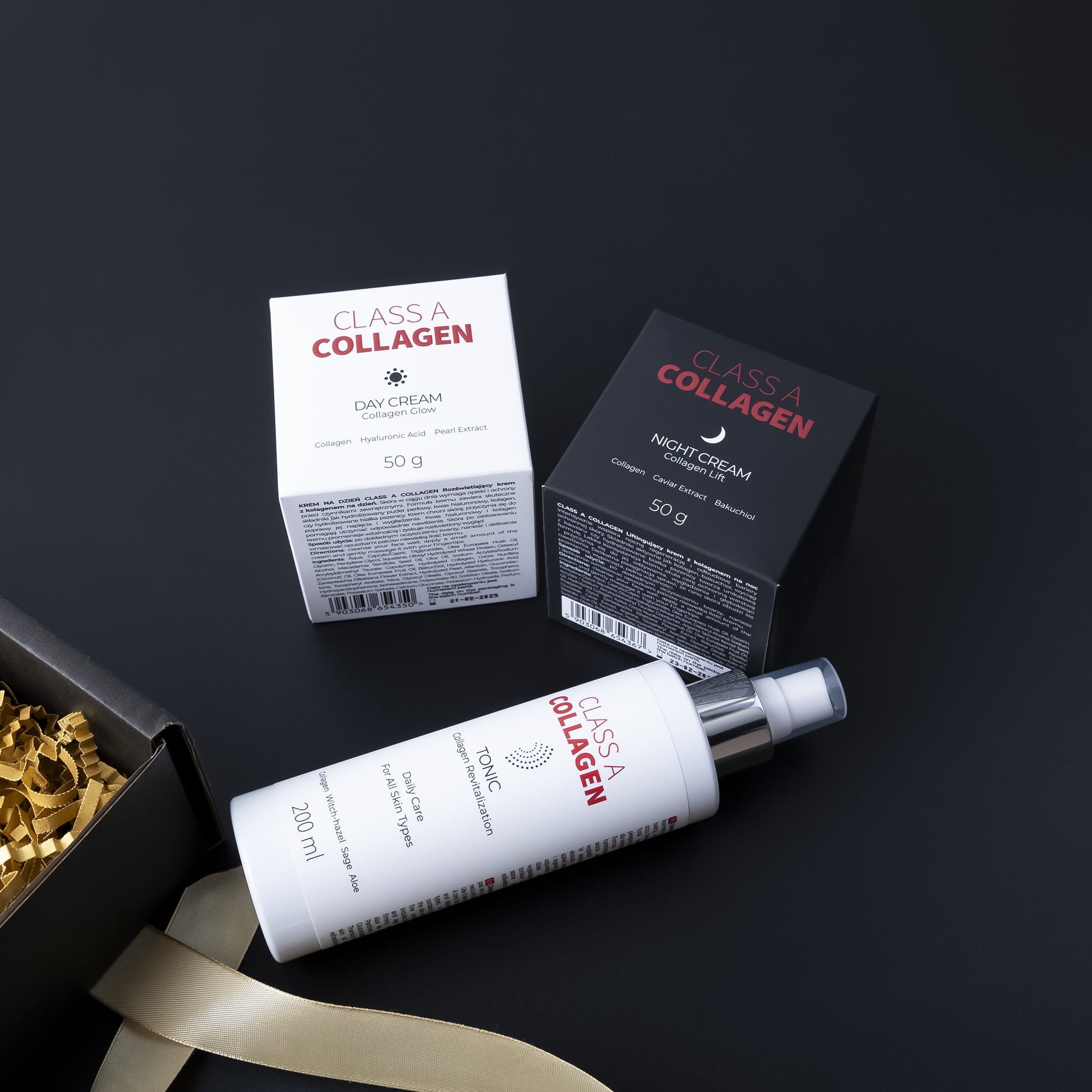 Sì, abbiamo altre creme al collagene, in particolare una crema viso da notte. Completa perfettamente gli effetti della crema giorno al collagene di Classe A. Le nostre creme viso al collagene sono disponibili anche come campioni, che puoi ordinare per testare di persona.