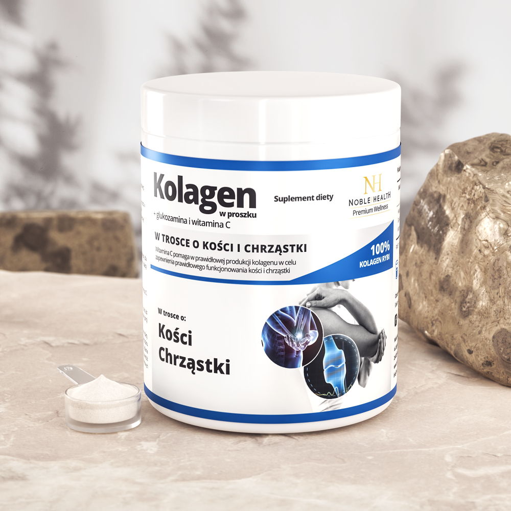 Collagene + Glucosamina e Vitamina C è stato creato per le persone attente alla salute della cartilagine, comprese le persone fisicamente attive. La formula contiene solo tre ingredienti attivi: collagene di pesce, glucosamina e vitamina C, ed è priva di conservanti, coloranti, aromi e riempitivi. Il collagene di pesce è facilmente assorbibile ed è strutturalmente simile al collagene umano. Una porzione giornaliera di 7 g contiene quasi 4 g di collagene e oltre 1,5 g di glucosamina. La vitamina C supporta la corretta produzione di collagene, favorendo il corretto funzionamento di ossa e cartilagine e proteggendo le cellule dallo stress ossidativo. La cartilagine agisce come un ammortizzatore, proteggendo le articolazioni e garantendo un movimento fluido. La forma in polvere consente di assumere grandi quantità di ingredienti ed elimina additivi non necessari. La confezione include un misurino per una misurazione precisa delle porzioni.