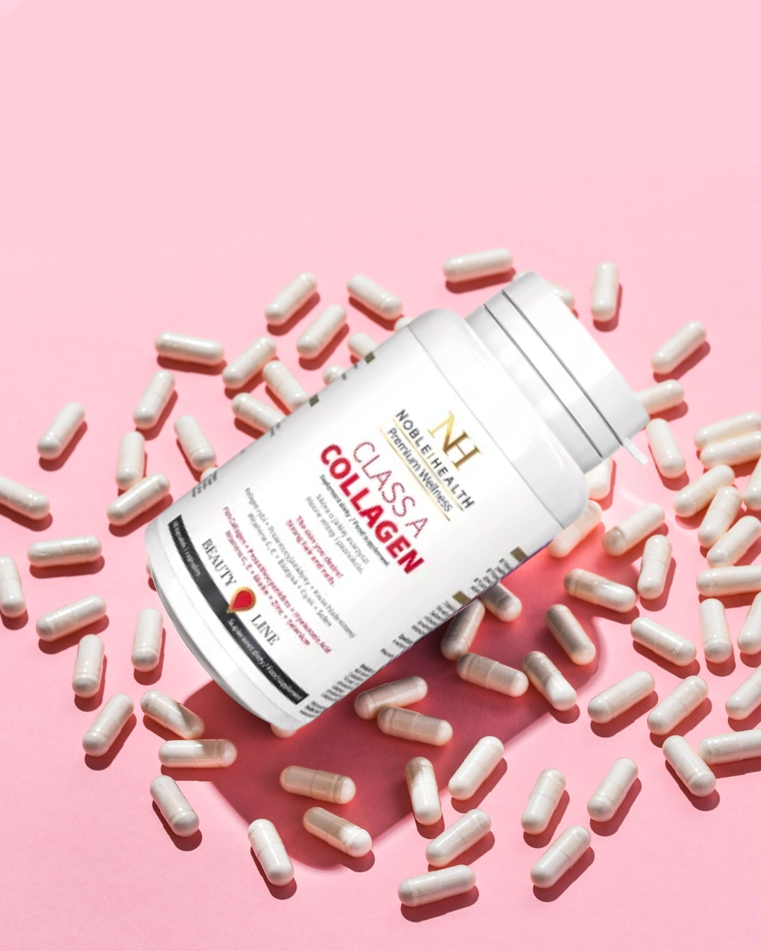Il collagene di Classe A è il bestseller pluripremiato di Noble Health. L'integratore è a base di NatiCol® , collagene di pesce francese di qualità controllata, elevata biodisponibilità e contenuto proteico superiore al 93% . Nel prodotto, ha un peso molecolare di circa 4000 Da e si presenta come idrolizzato, ovvero peptidi corti facilmente assimilabili dall'organismo. Il formato in capsule e le proprietà di NatiCol® rendono il prodotto pratico anche per chi non ama il sapore e l'odore di pesce. La formula è arricchita con vitamine, acido ialuronico ed estratto di semi d'uva, tra gli altri ingredienti. Lo zinco aiuta a mantenere sani capelli, pelle e unghie, mentre la biotina contribuisce alla salute di capelli e pelle.