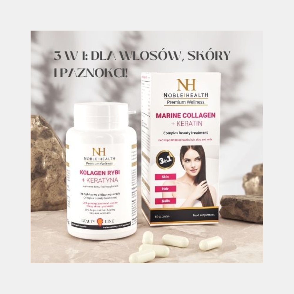 Fish Collagen + Keratin è un integratore alimentare in capsule contenente collagene di pesce, cheratina, zinco e selenio, tra gli altri ingredienti. Questo prodotto è stato creato per offrire una cura di bellezza completa per pelle, capelli e unghie.