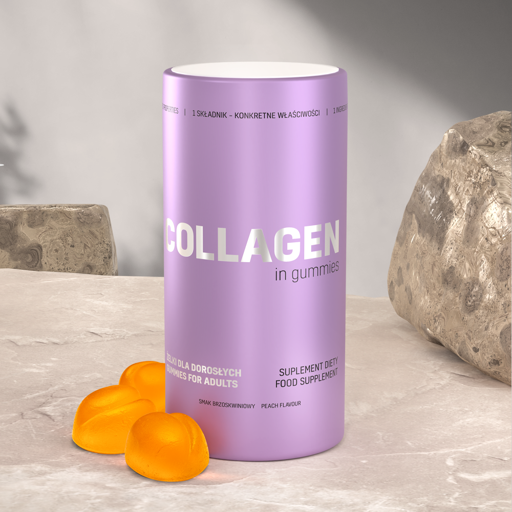 Siamo pienamente d'accordo con questo principio e vi offriamo le Collagen Gummies. Una dose giornaliera del prodotto contiene un ingrediente attivo: 240 mg di collagene, una proteina che è il componente principale del tessuto connettivo, come la pelle.