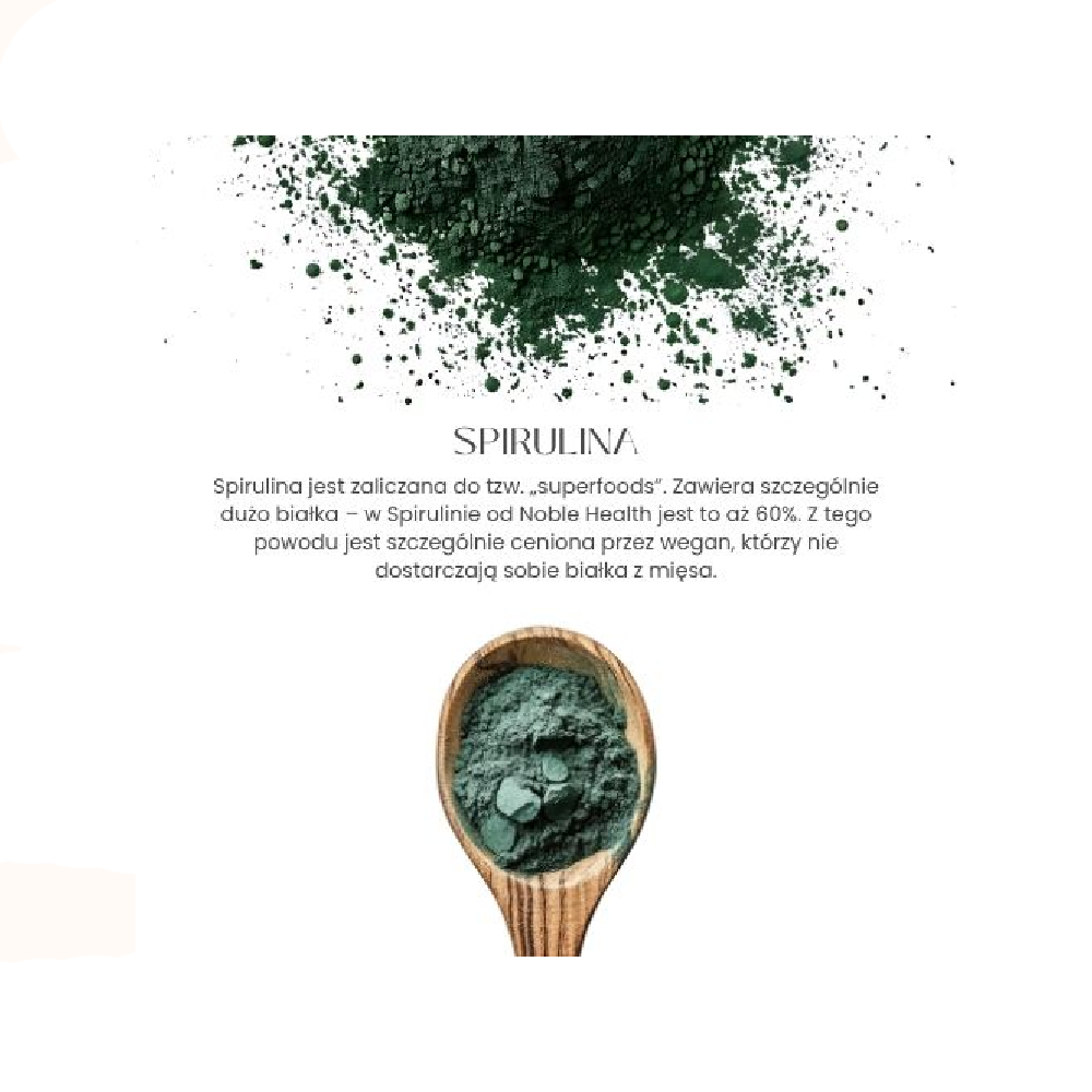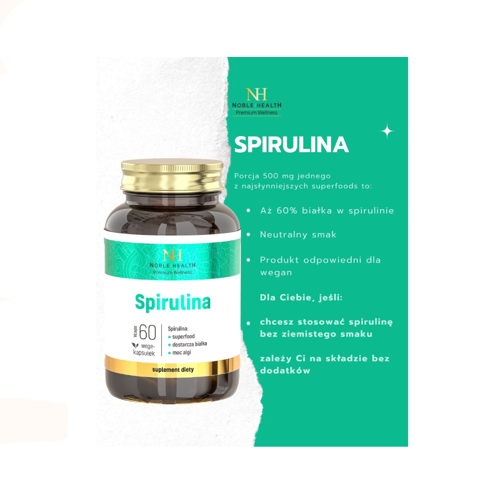 La spirulina è nota da secoli: veniva consumata, tra gli altri, dagli Aztechi, e oggi il suo utilizzo nelle missioni spaziali è considerato un superfood. La spirulina è una microalga considerata un superfood , che contiene fino al 60% di proteine nel nostro prodotto, rendendola un ottimo supporto per vegani, vegetariani e persone fisicamente attive. Il nostro integratore ha una formula semplice, priva di additivi, conservanti, coloranti o aromi non necessari. Una dose giornaliera contiene 500 mg di spirulina in un pratico formato in capsule, eliminando il suo sapore intenso. L'integratore è confezionato in una bottiglia di vetro scuro per proteggere il contenuto da fattori esterni. Il prodotto è adatto ai vegani.